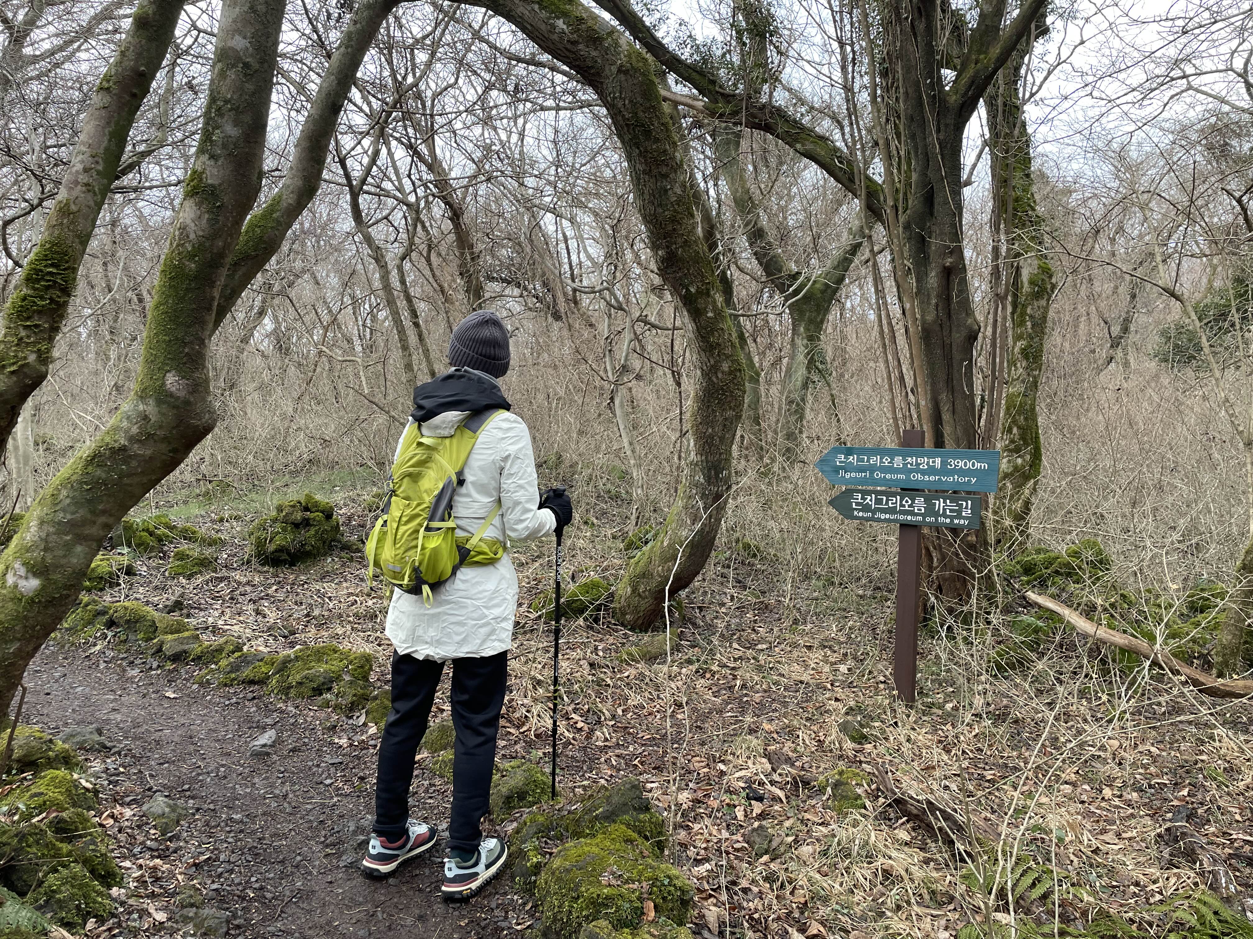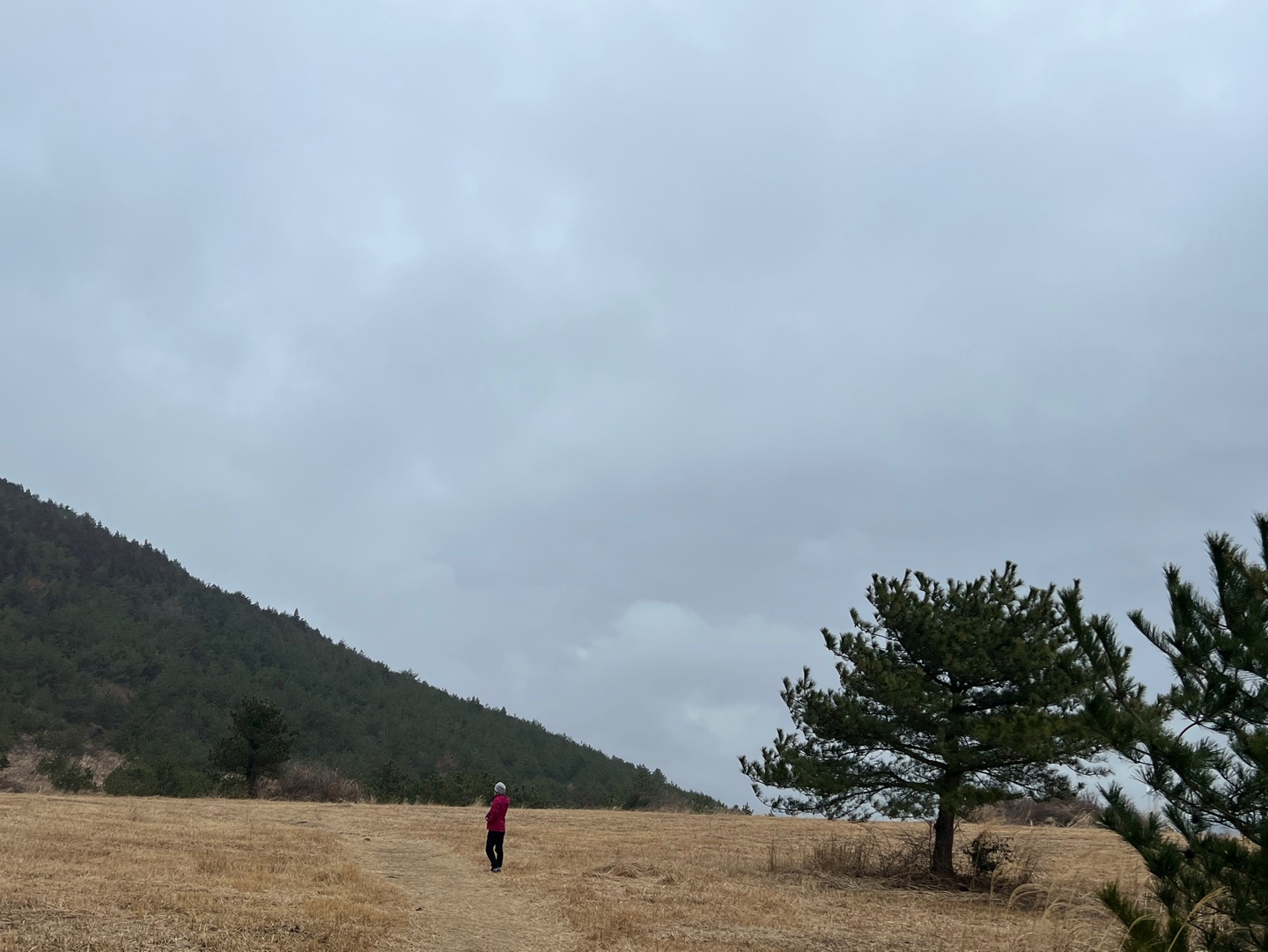 2월의 제주라. 몇 년 전 직장생활을 할 때는 봄방학기간이라 지인들과 짧은 일정으로 제주에 두세 번 정도 왔었다. 2월의 제주는 겨울에서 서서히 벗어나면서 무심한 듯 봄꽃을 준비하고 있었다. 중산간지대는 좀 더 따뜻한 해안지대에 금세 피어있는 유채꽃을 아직 볼 수 없다. 대신 새순이 움트는 훈훈한 냄새와 온기를 느낄 수 있다. 화산지대에 형성된 독특한 제주만의 곶자왈 숲과 목초지 그리고 그들의 생태를 볼 수 있다는 것이 얼마나 큰 축복인지. 그러면서도 4.3 때 소개령이 내려 불타버린 제주민들의 잃어버린 고향과 터를 생각하면 왠지 숙연해지고 여행자로서 마음 한편이 미안해지곤 한다. 300개가 넘는 크고 작은 오름들을 품고 있는 제주의 오름 중 제주시 조천면 교래리 교래자연휴양림에서 출발하는 큰지그리 오름을 오른다.