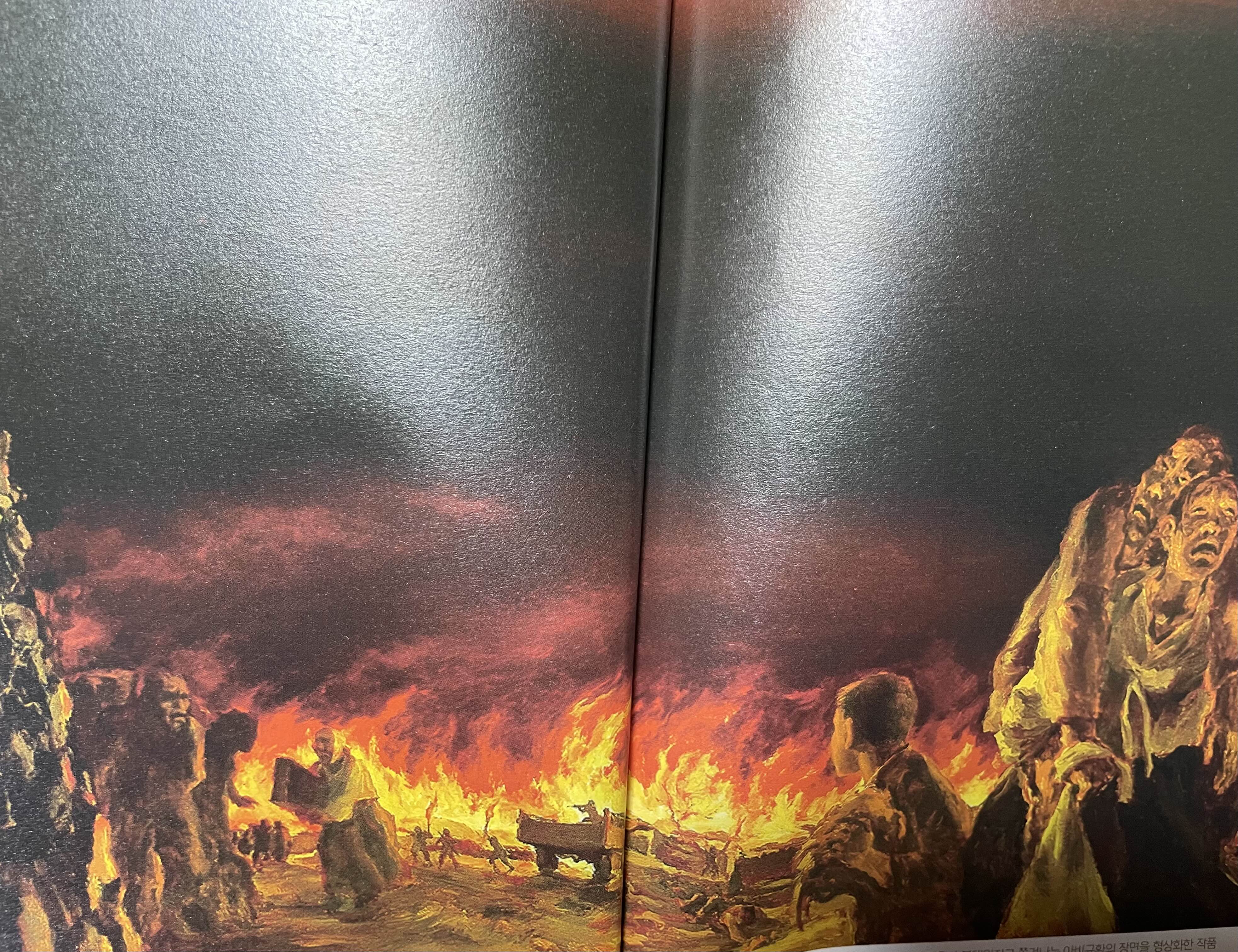 <강요배 작. " 천명" 4·3 당시 초토화작전으로 마을이 불태워지고 쫓겨나는 아비규환의 장면을 형상화한 작품>