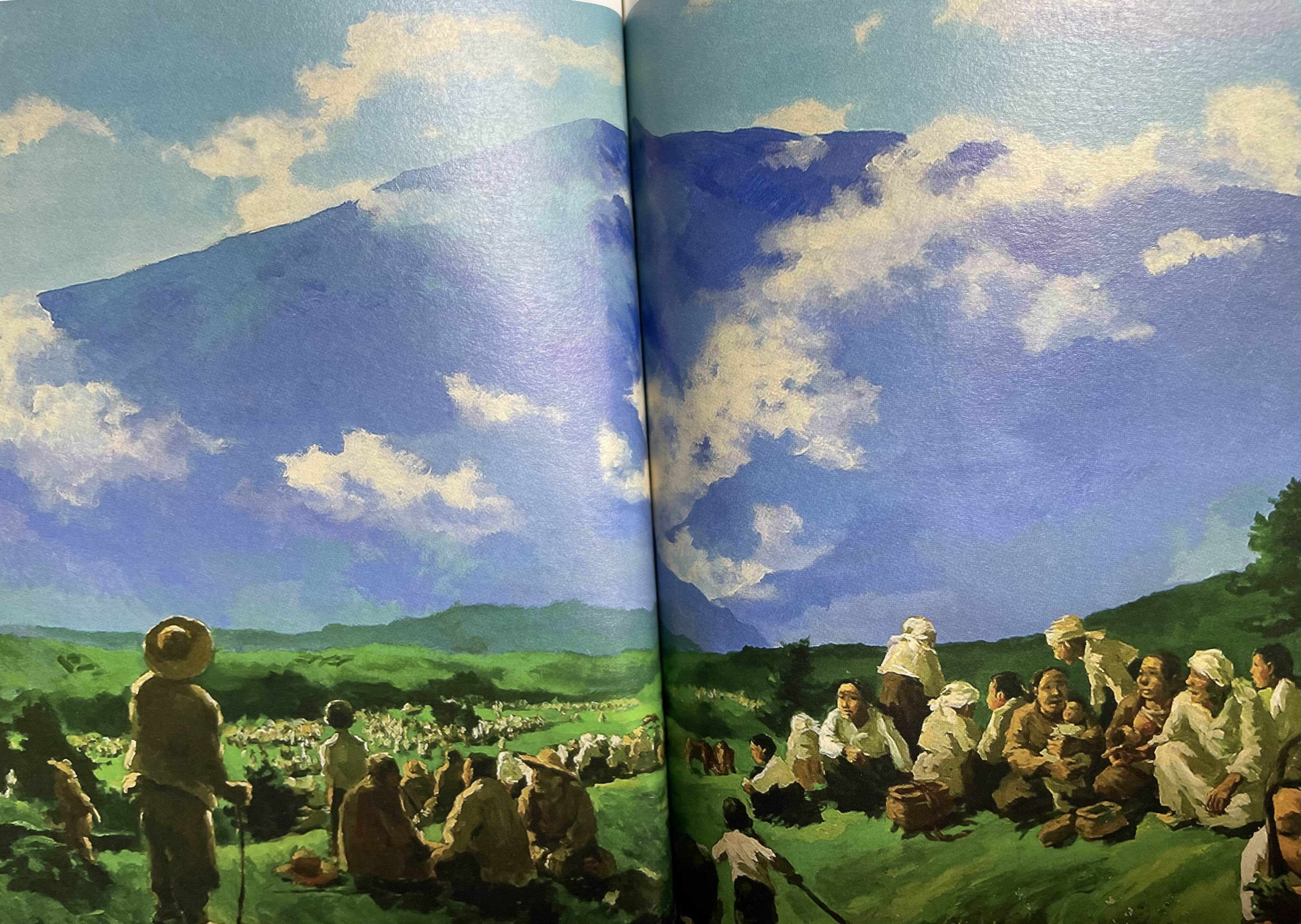 강요배 작. " 한라산 자락 백성" 5.10 단독선거를 반대하는 주민들이 산에 오른 모습을 형상화한 작품
