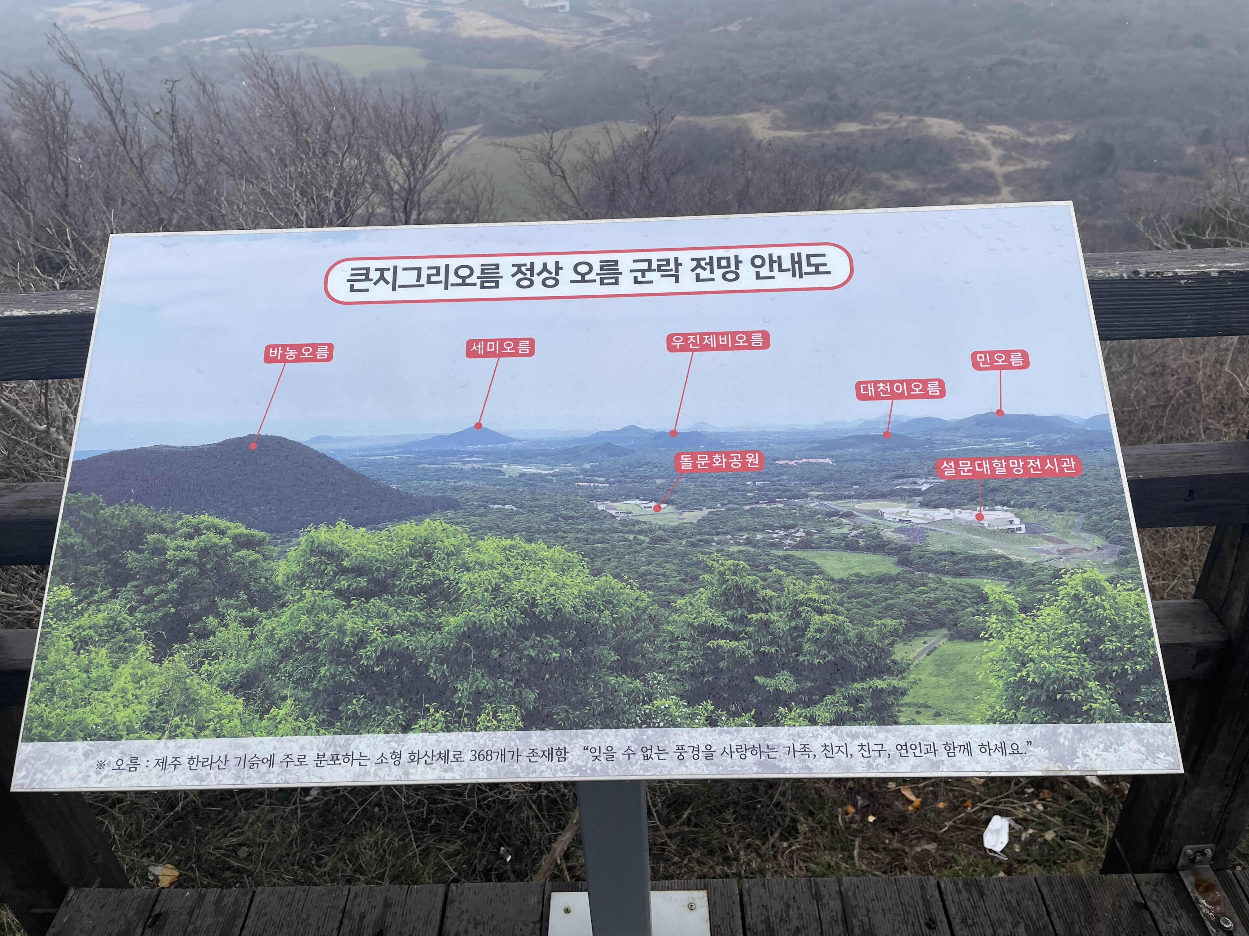 날씨가 화창하면 저 너머 한라산 정상을 볼 수 있다고 한다. 오는 길에 두 분의 오름 등산객을 만났다. 그들은 제주토박이라 했다. 오르지 않은 오름이 별로 없지만 큰지그리 오름을 가장 좋아하여 틈나는 대로 오른다고 하신다. 왕복 9킬로, 2시간에서 3시간 내외로 소요된다. 길은 오름이지만 가파르지 않고 산책 삼아 걸어도 좋을 정도로 야트막하고 다정한 오름이다. 정상에 가까운 곳에 삼나무 숲이 조성되어 있어 시원한 청량감과 마음이 탁 트이는 자연의 넓은 품을 느낄 수 있다.