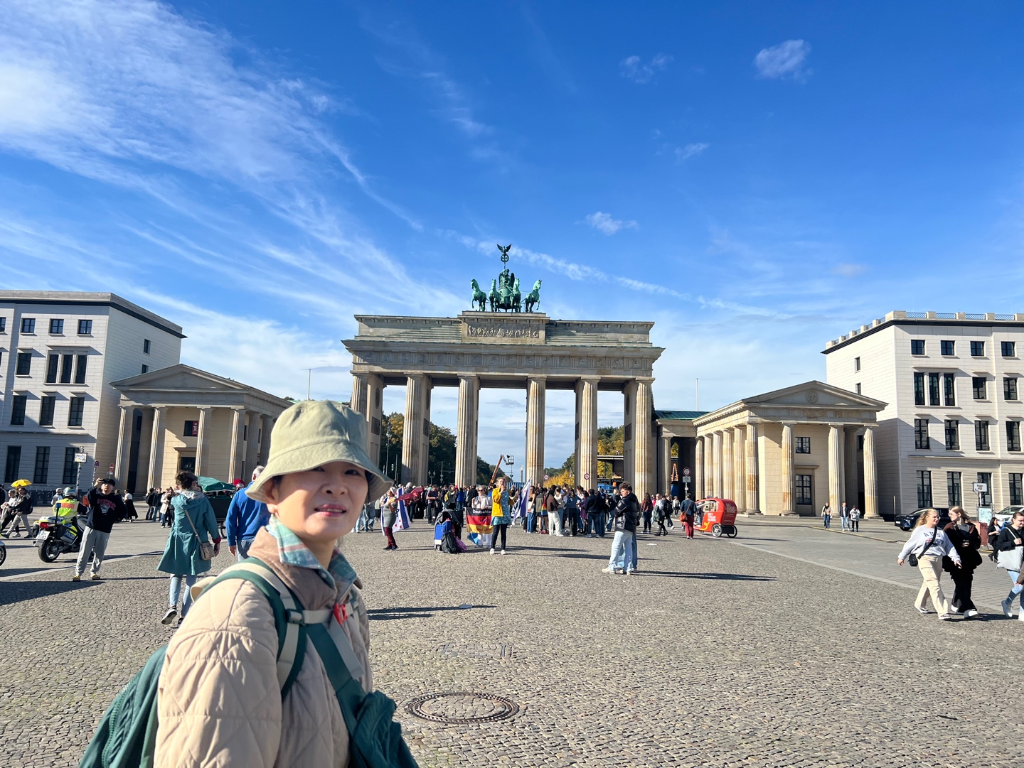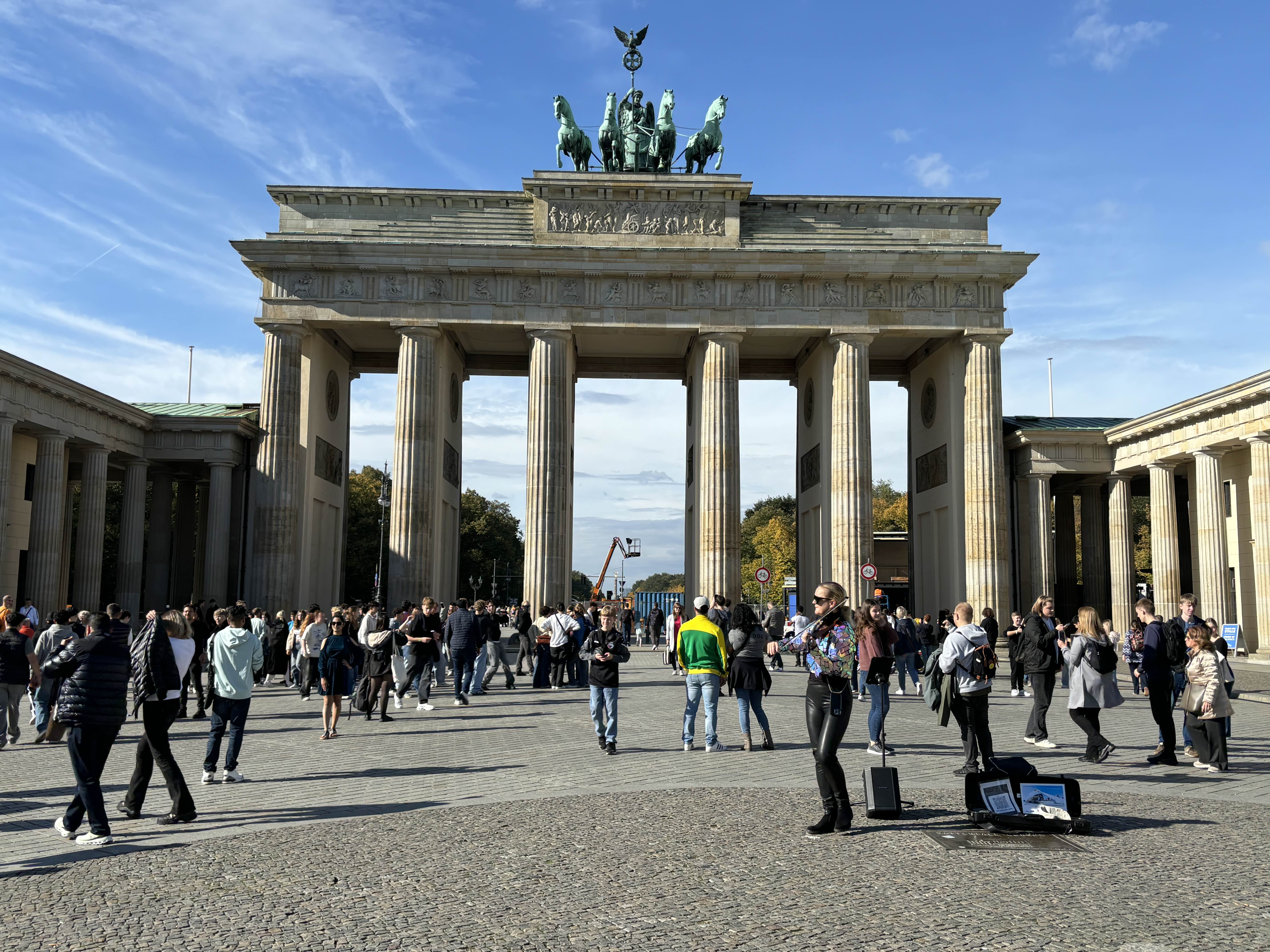 집 근처 Rosenthaler Platz 역에서 M1을 타고 여섯 정거장을 거쳐 Stu Friedrichstr에서 하차한다. 그리고 브란덴부크크까지 걸어간다. 1791년에 지어진 개선문이 있다. 고대 그리스가 아크로폴리스 입구를 모방해서 만든 건축물로 동서 베를린의 경계를 짓는 곳에 있는 브란덴 부르크. 이곳을 중심으로 사방으로 도로들이 뻗어있다. 아침 11시부터 사람들이 관광객을 포함 인산인해를 이룬다. 어디가 동베를린이고 어디가 서베를린인지..