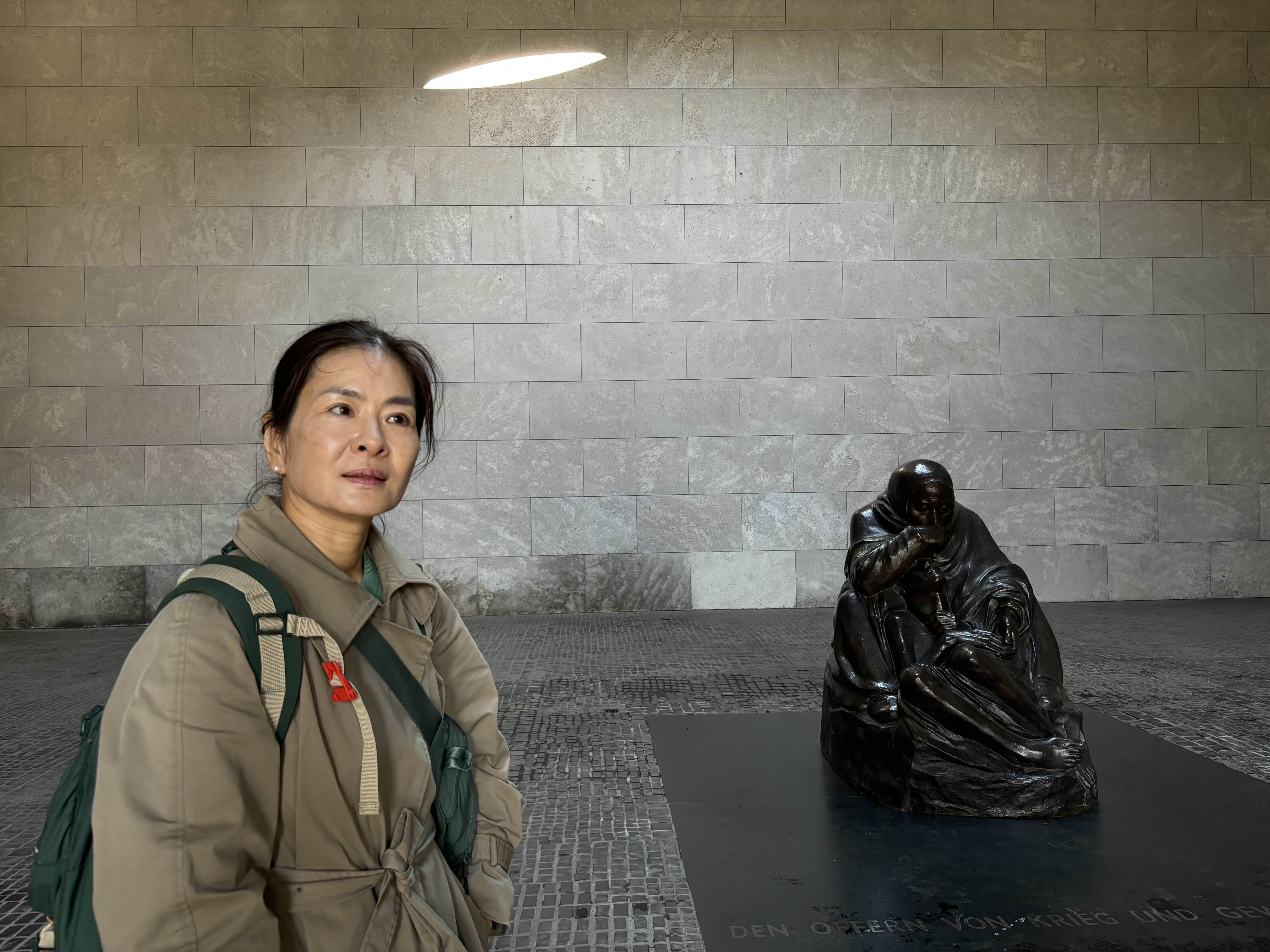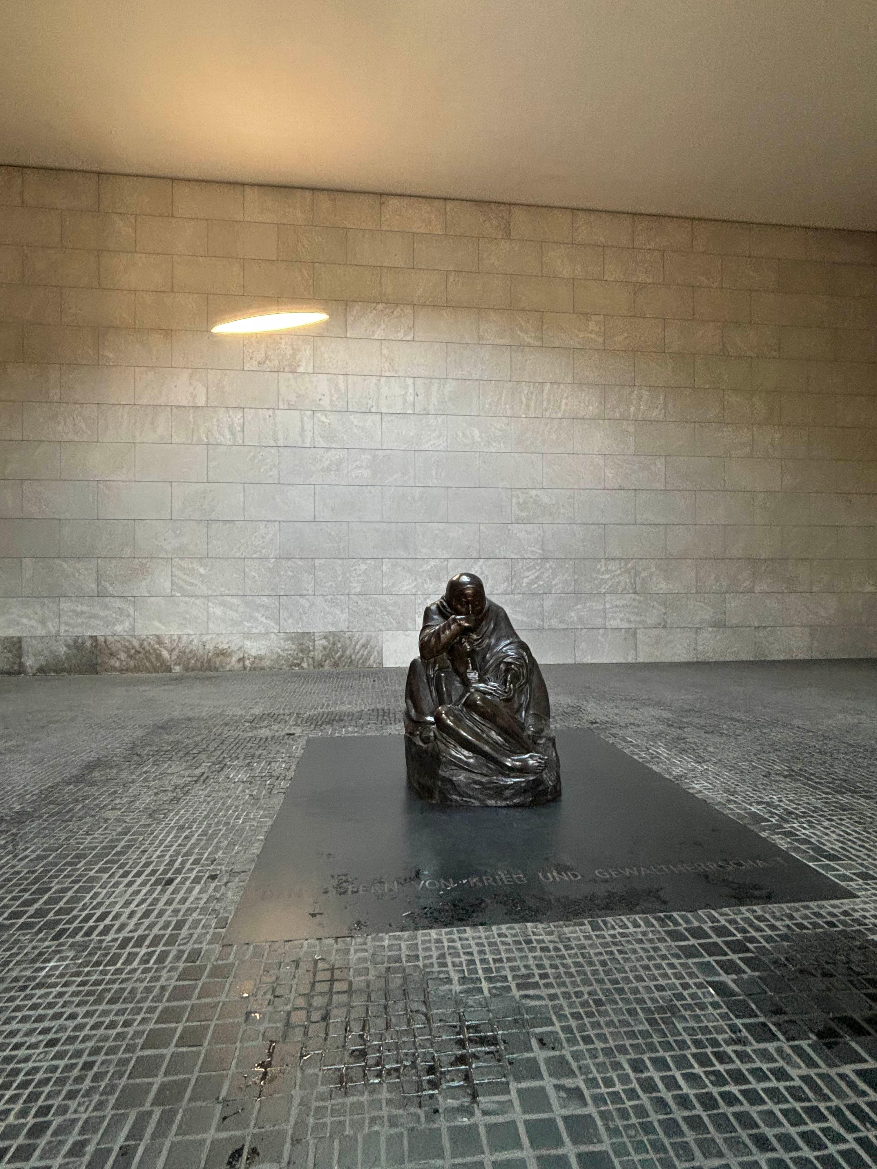 오늘은 생전처음으로 연주회라는 곳엘 간다. 그것도 베를린 필하모니 런치무료공연 아닌가. 필하모니가 매주 수요일 런치무료공연을 40여 분에 걸쳐한다고 한다. 가슴이 아침부터 떨린다. 이런 문화자산을 시민들을 위해 공유한다고 하니 부럽고 슬쩍 질투가 난다. 아침 10시경 Rosenthaler Platz에서 U반을 타고 운테르덴린덴까지 간다. 가는 길에 훔볼트 대학교 입구에서 잠깐 쉰다. 아름다운 분수와 담쟁이덩굴이 색색이 물들어 가고 있다. 단아하면서도 육중한 건축양식이다의. 한참을 앉아서 건물을 구경한다. 그리고 전사한 병사들을 위한 위병소로 사용된 건물 중앙에 자리하고 있는 케테 콜비츠 작가의 “ 죽은 아들을 안고 있는 어머니-피에타”를 보러 노이에 바헤로 향한다. 콜비츠의 피에타는 비애감을 과장되게 표현하고 있지 않은 보통 사람들의 상실 후 애통해하는 어머니의 슬픔을 단순하면서도 절제된 동작과 표정으로 표현해 내고 있다. 피에타가 놓인 위로 뚫린 천장이 있다. 그곳으로 비가 오고 눈이 내리고 햇빛이 쏟아져 들어온다. 아들을 잃은 고통받는 어머니는 그렇게 그곳에 언제나 있다. 유일하게 한국어 안내판이 있다. ‘노이에 바헤-전쟁과 폭정의 희생자를 추모하는 독일 연방공화국 국립추모관-이라고 쓰여있다.