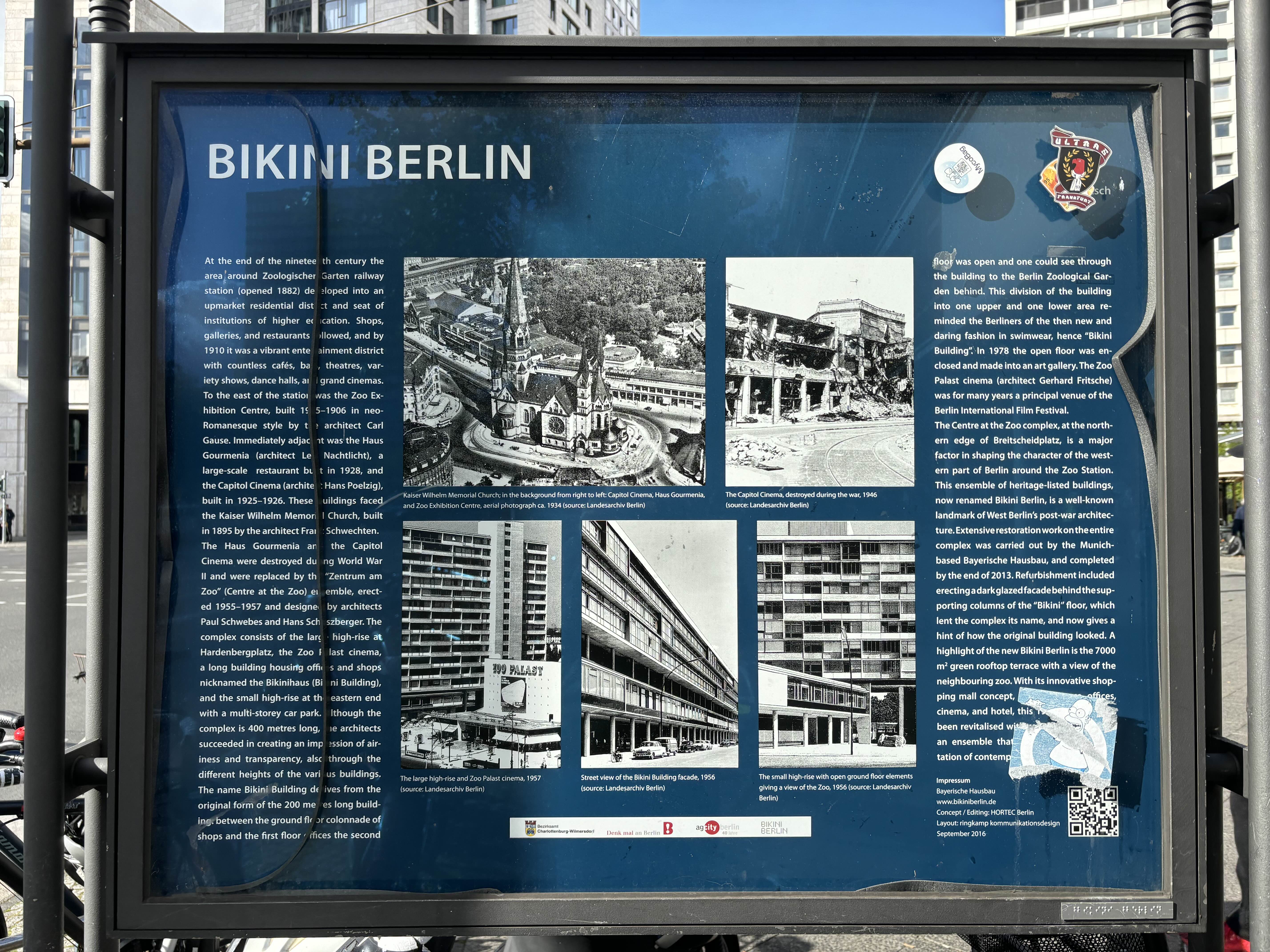 이 동네는 Bikini Berili로 불리는 구역이 있다. 서베를린의 전후 건축물을 보여주는 랜드마크인데 2013년 뮌헨이 건축가에 의해 광범위한 복구작업으로 인한 high-ride Building과 복합쇼핑센터인 비키니 건물이 들어섰다. 인근의 동물원을 조망할 수 있는 7천 평방미터 이 그린 테라스를 가진 비키니 건물.