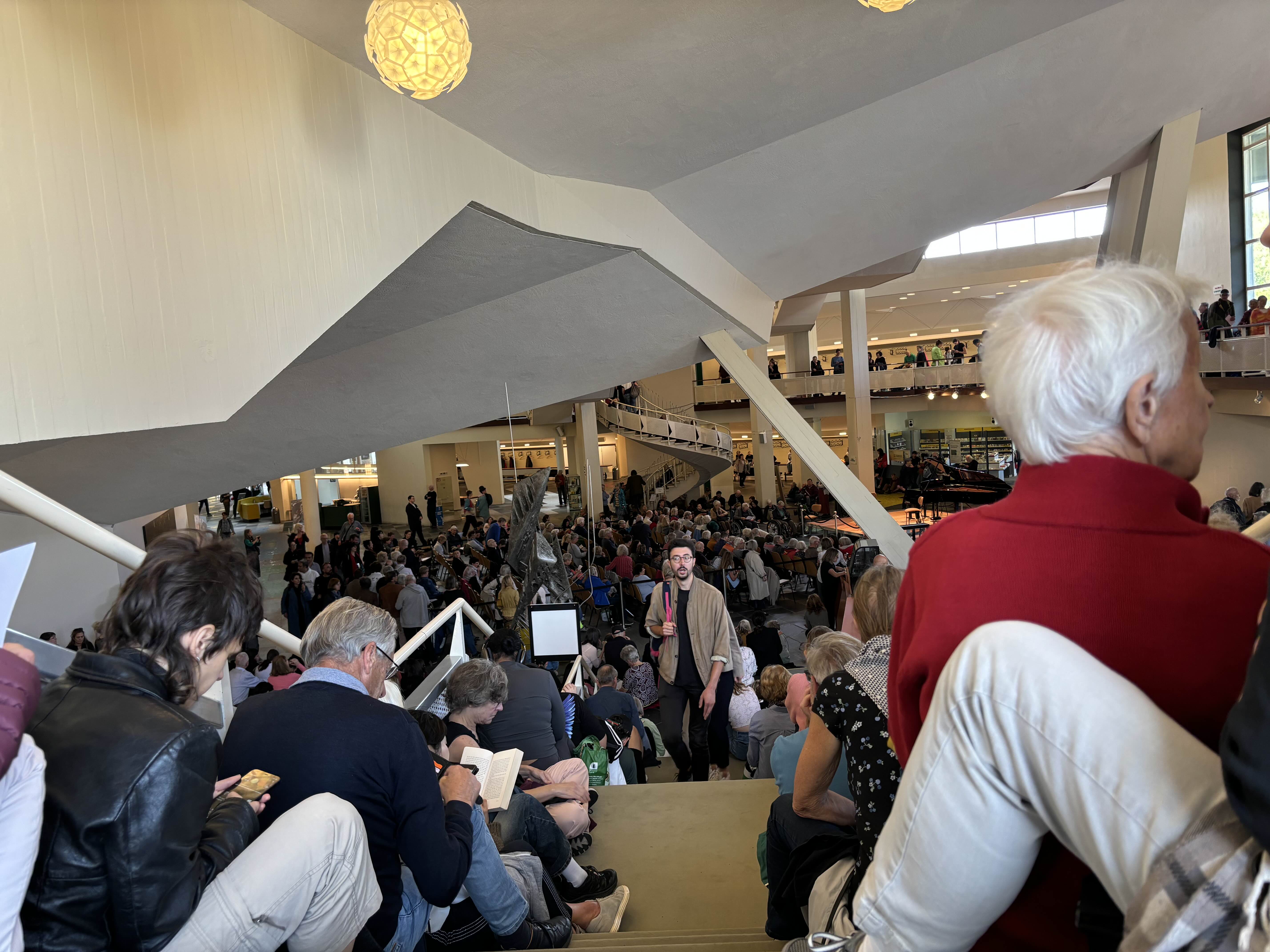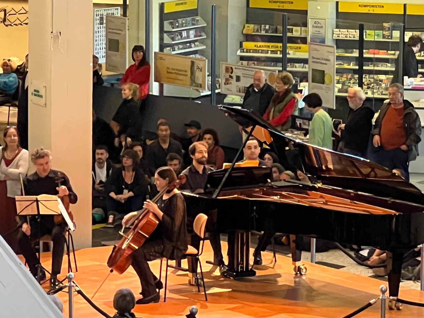 300번 버스로 필하모니아 거리 ( Philharmonia straße)에서 내린다. 생각보다 부드러운 하지만 기하학적인 균형미를 가진 공연장이다. 시민들에 합류해 약 30분가량을 기다리자 입장이 시작되었다. 공연은 1시에 있는데 너무 늦게 도착한 탓. 들어가자 Seats for people possesing a severly disabled pass- 중증 장애등급을 가진 이들을 위한 좌석), 즉 장애인 우선석이 공연하는 곳에서 가장 가까운 곳에 마련되어 있고 자원봉사하시는 분들의 안내를 받는다. 금세 계단참과 위층의 바닥 빈 공간이 보이지 않을 정도로 사람들이 가득 찼다. 어렵게 일층 계단 끝에 자리를 마련한다. 젊은이들도 많이 왔지만 거의 대부분 시니어들인 듯했다. 베를린에 와서 또 느낀 것은 왠지 무질서해 보이지만 질서가 있다는 것. 공연장에 와서도 또 느낀다. 이게 민주주의가 아닐까. 하는 생각. 오늘 연주는 슈베르트의 Klaviertrio B -Dur D 898 Allegro moderato, Andante un poco-mosso, Scherzo-Allegro-Trio Rondò Allegro vivoce