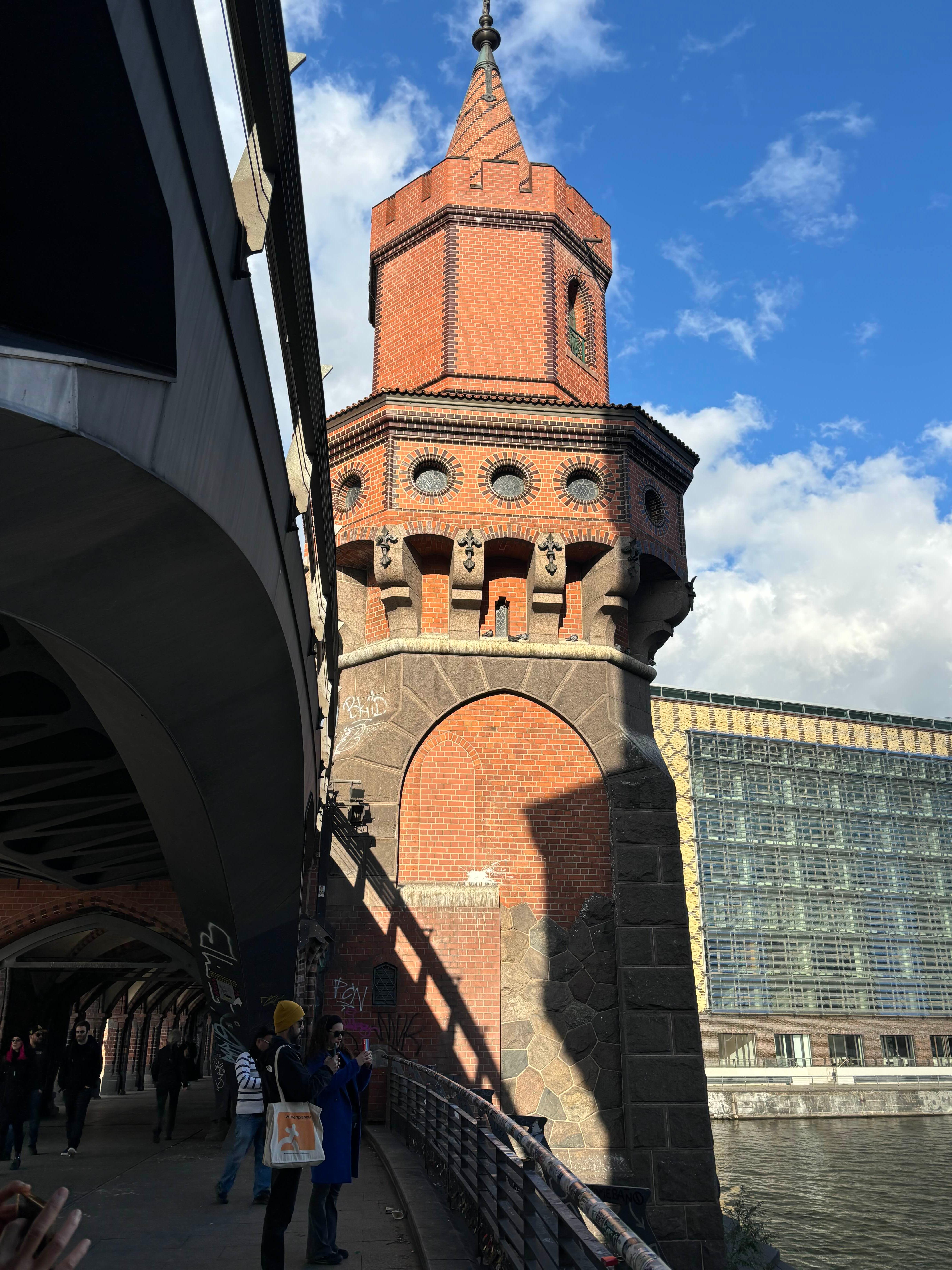유로센터 만남의 장소 바로 앞에 있다. U3을 타고 Schlesisches Tor에서 내려 약 400 미터를 걸어 오베르바움 다리 ( Oberbaum Bridge)로 간다. 마치 오레엔털리즘의 느낌을 갖게 하는 붉은 벽돌로 만들어진 아름다운 다리다. 1894년에 만들어진 다리라는데 아직도 견고하다.