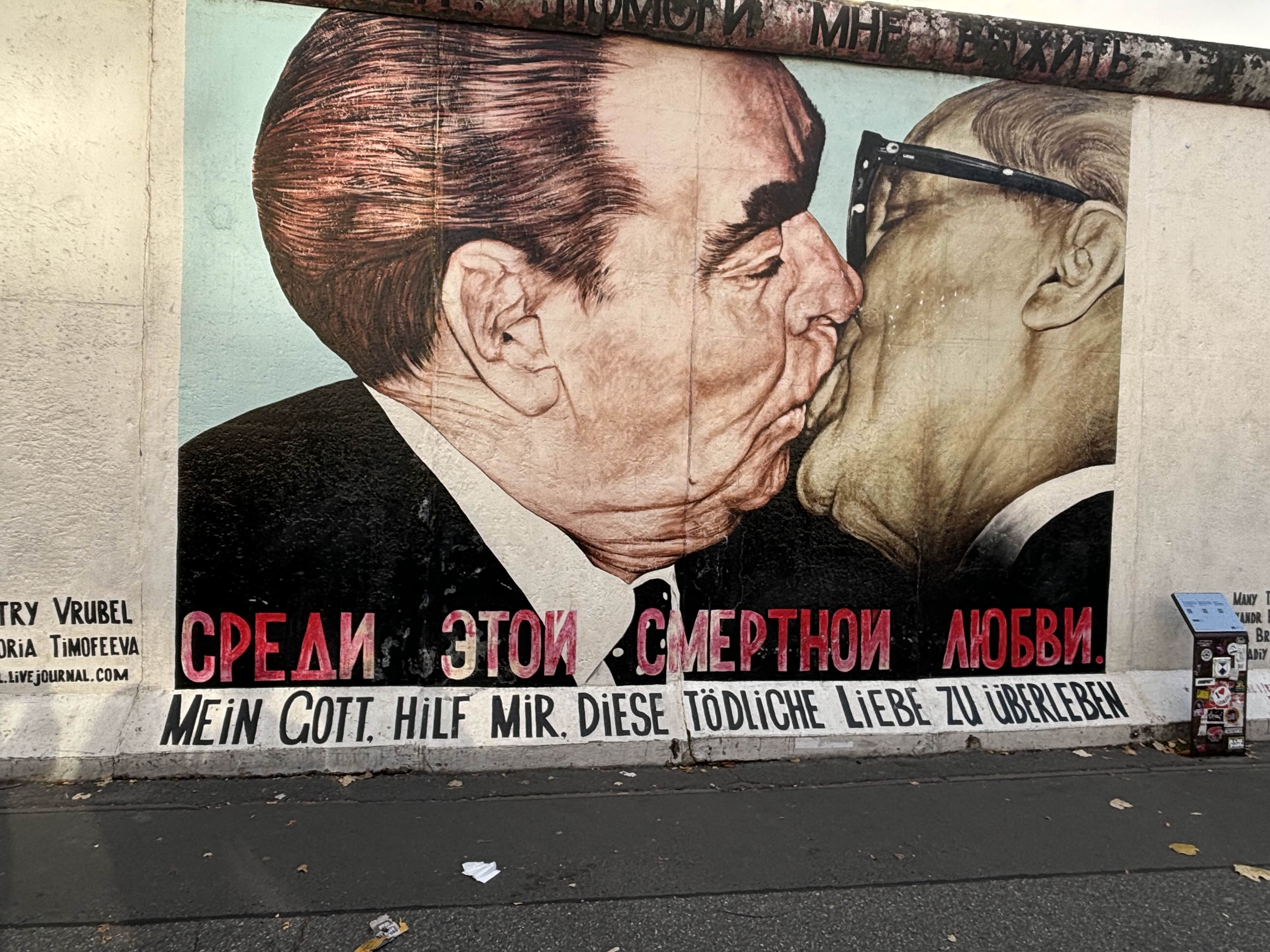 러시아화가인 Dmithry Vrubel 은 사회주의 리더 호네커와 브레즈네프의 키스라는 그림으로 유명한 그림을 남겼다.