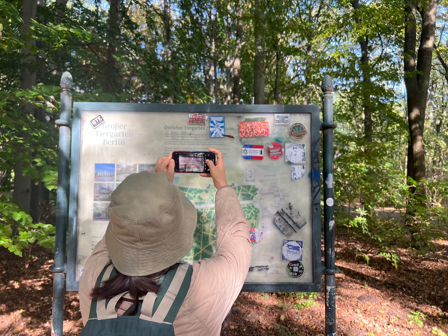 연방의회가 브란덴부르크에서 코 앞에 있지만 20여 일 전에 사전예약을 한 경우만 입장이 가능하다는 것을 여기 와서 알게 되다니. 결국 돔까지 올라가 베를린 전경을 보고 싶었지만 포기할 수밖에.. 아쉬움을 뒤로하고 도심 한가운데 있는 끝이 보이지 않을 정도로 넓고 깊은 <티어가르텐> 숲으로 들어선다. 잠시 벤치에 앉아 도시락으로 싸 온 달걀과 과일로 요기를 한다. 우리가 앉은 벤치도 그라피티 문양이 요란하다. 표현주의자 베를리너들.. 드럼통이며 빈벽틈 그리고 쓰레기통 할 것 없이 빈 곳이 보이면 어김없이 빼꼭하게 그라피티로 장식하고 있는 베를리너들의 자유표현의식이 맘에 든다. 혼란 속에서 질서를 찾는 듯한 느낌이랄까.